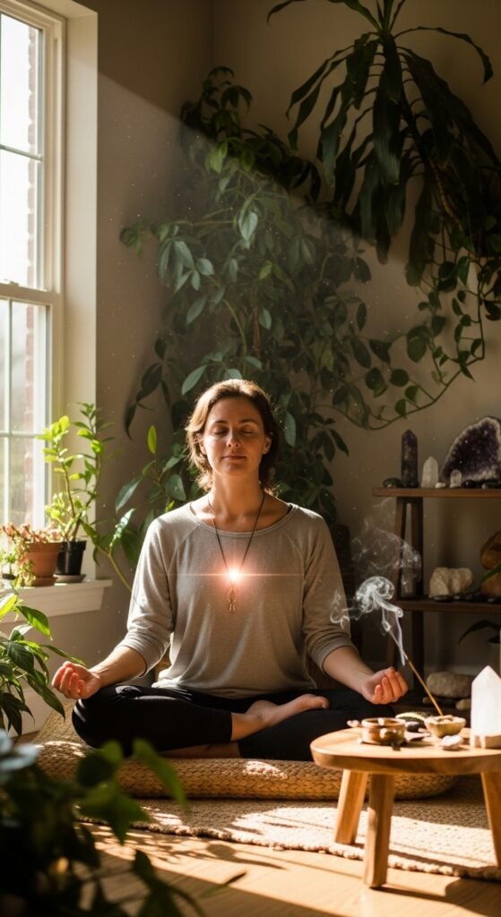 Certain frequencies can stimulate your third eye chakra. The 963 Hz frequency and chanting “OM” are especially powerful. Play binaural beats, hum softly during meditation, or listen to spiritual music tuned to these vibrations. Over time, this practice aligns your inner and outer energy fields.