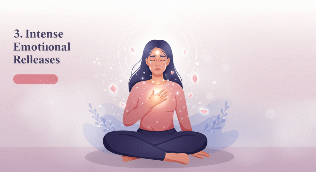 When the Kundalini energy stirs, it brings unresolved emotions to the surface. You might find yourself crying, laughing, or feeling anger without a clear reason.